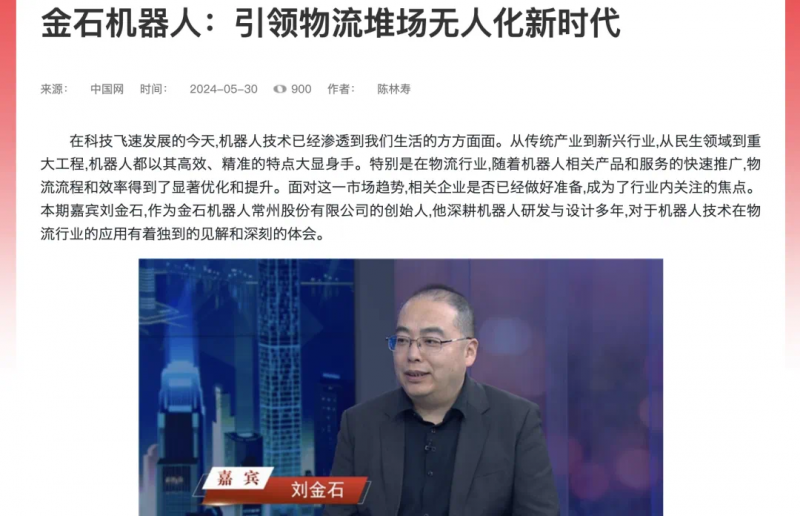 金石報道|金石機(jī)器人在LET2024廣州物流展上火爆全場:總工程師劉金石先生接受央視、中國網(wǎng)、中國工業(yè)報等眾多權(quán)威媒體采訪!
