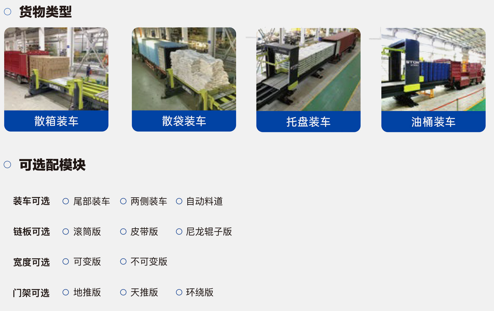 金石裝車機器人的裝車方式是貨物先在平臺上排隊備貨,然后平臺的載貫鏈板部分整體推入車廂,再將鏈板抽出,從而完成裝車。裝車機器人可以根據(jù)車廂在地面的位置,進行寬度、深度、高低方向進行變形,是一種自適應(yīng)車廂的柔性裝車平臺,可以兼容市面上大部分車輛。