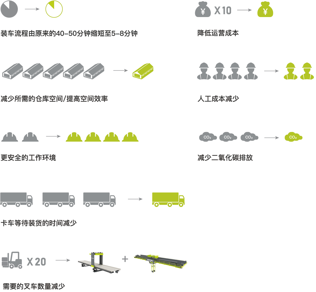 存儲1萬個1200x1000mm的托盤,叉車平庫占地面積1.1萬平米,空間機器人只有2000平米,人力只有叉車的10%,能源消耗是叉車的一半,20年的綜合使用成本是叉車的1/4.