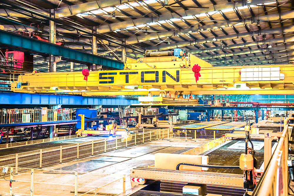在滿足每張鋼板零件質(zhì)量標準前提下,8臺切割機,每月工作28天,每天工作20小時(兩班),產(chǎn)能產(chǎn)品6500噸/月,平均每天(兩班)140張板。