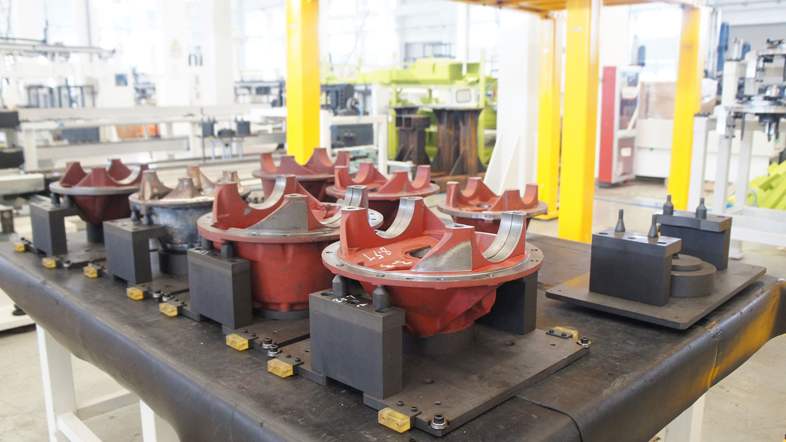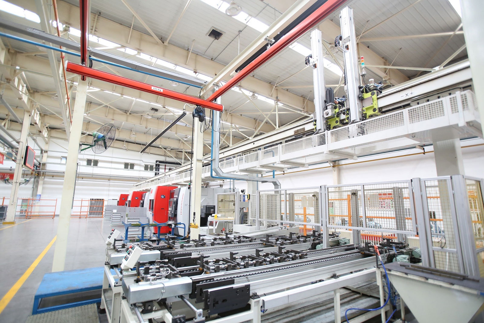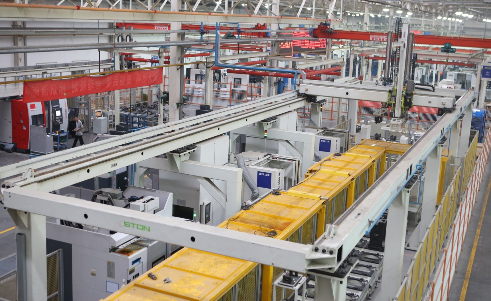 客車減速器殼體桁架機(jī)器人FMS線由1套三軸桁架機(jī)械手、2臺(tái)臥式加工中心、1臺(tái)立式加工中心、夾具庫(kù)、輸送料倉(cāng)、裝配機(jī)及產(chǎn)線管控系統(tǒng)組成,實(shí)現(xiàn)多品種小批量零件的自動(dòng)上下料、夾具自動(dòng)柔性切換。