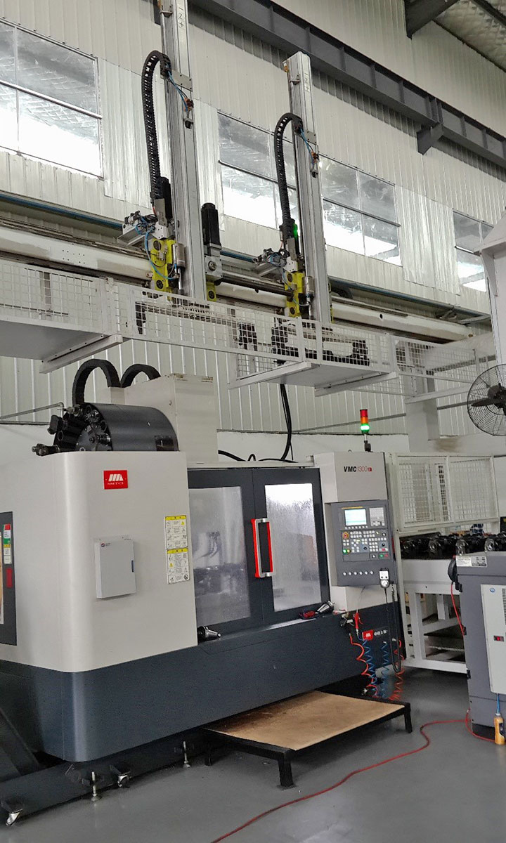 采用雙頭桁架機器人,具有自動識別防錯、自動旋轉(zhuǎn)角度等復(fù)雜動作,工件裝卸時間30秒。