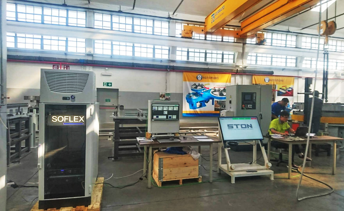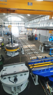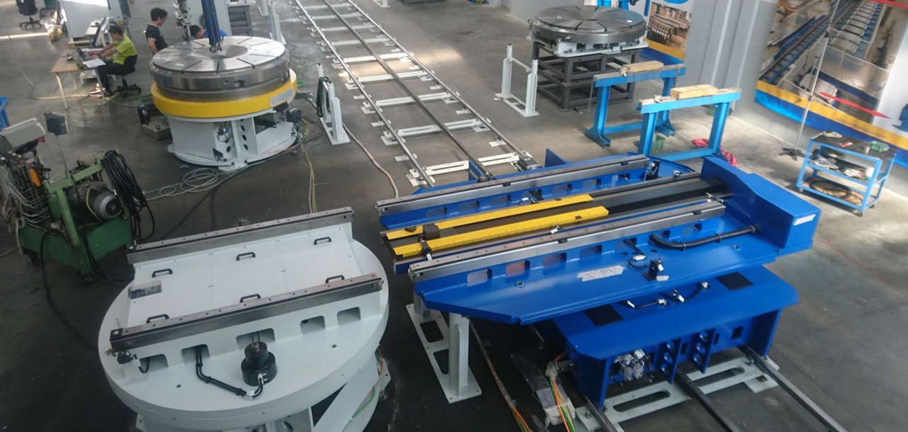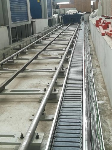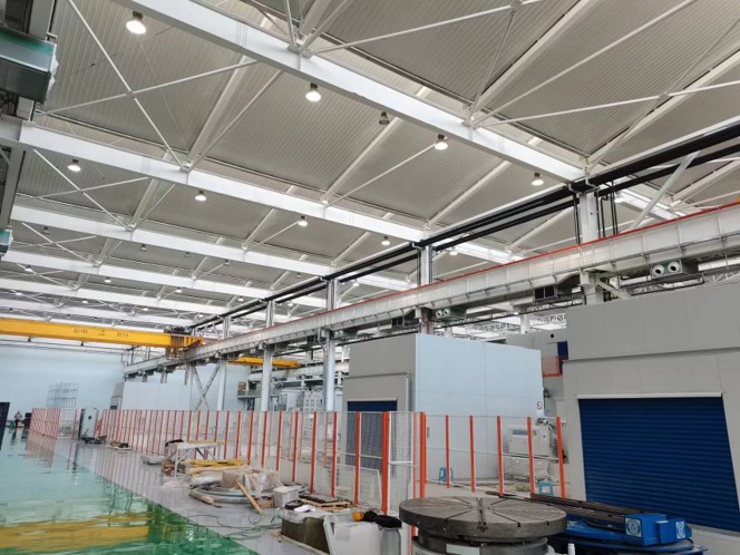 太原某公司齒圈FMS自動(dòng)線(xiàn)長(zhǎng)65m,主要由1套單工位托盤(pán)輸送裝置、8套平面托盤(pán)、4套手動(dòng)托盤(pán)、5套托盤(pán)停留站及輔助裝置組成,用于完成2臺(tái)數(shù)控銑齒機(jī),2臺(tái)立式車(chē)銑復(fù)合加工中心、3臺(tái)數(shù)控磨齒機(jī)、1臺(tái)倒棱倒角機(jī)、1個(gè)檢測(cè)工位、1臺(tái)專(zhuān)用清洗機(jī)的托盤(pán)轉(zhuǎn)運(yùn),并接收上層MES指令進(jìn)行線(xiàn)內(nèi)自動(dòng)排產(chǎn),使機(jī)床利用率最大化。